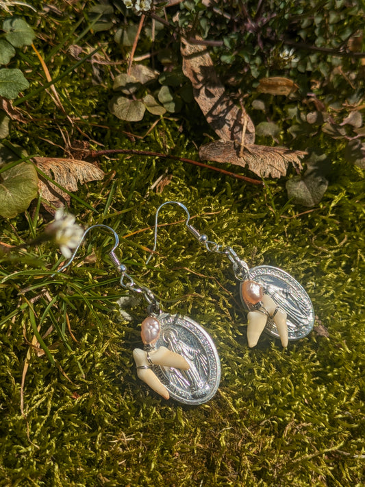 Fox Tooth Mother Mary Earrings