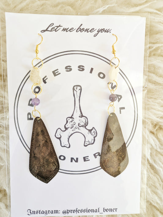 Squirrel Vertebrae & Agate Gems Earrings